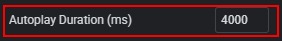 - Autoplay Duration (ms) — sets the delay (in milliseconds) before switching to the next slide.