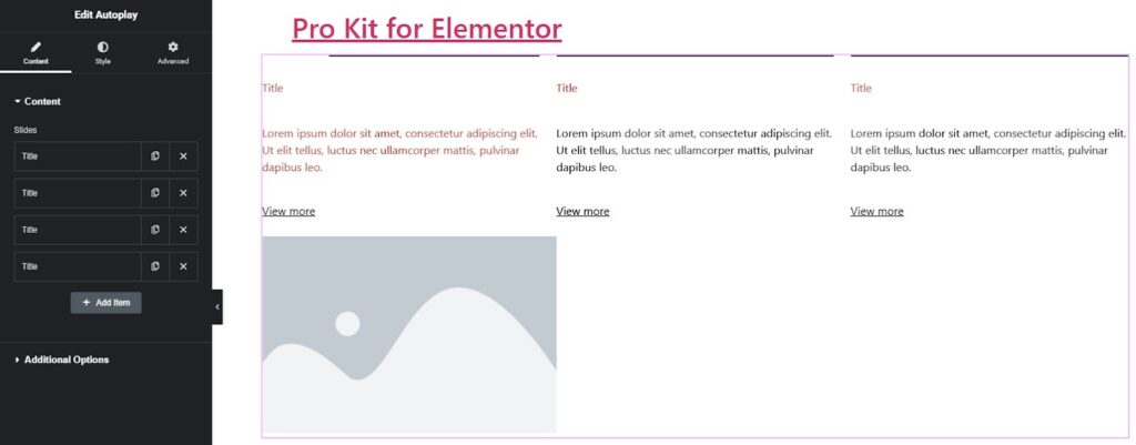 To add a new tab to the widget, click the widget on the page, go to the Content tab, and click the Add Item button.