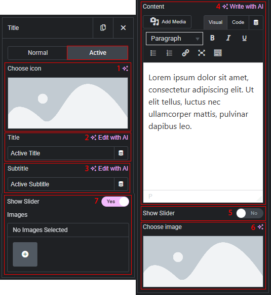 - If the slideshow is enabled, you can add multiple images that will be displayed in the slider.