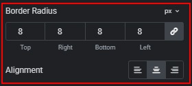 - Set the border radius. Adjust alignment.