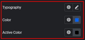 - Change typography. Set text color. Set active state color.