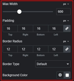 1. Set the maximum width. Adjust outer padding. Configure border radius. Set border type. Change background color.