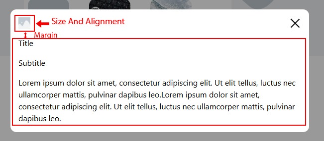In the Modal section, you can configure the pop-up window: