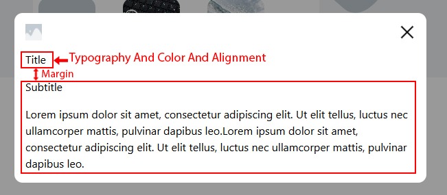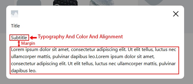 1. Change typography, color, alignment, and margin for the modal title.