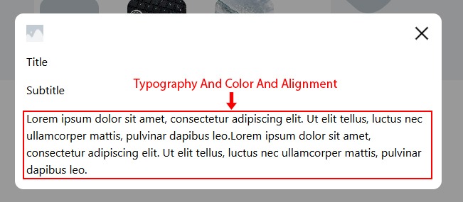 1. Change typography, color, and alignment for the modal description.