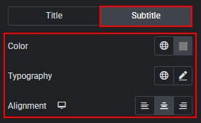 - Subtitle tab — typography, color, alignment for the section subtitle.