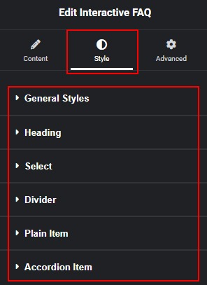 On the Style tab, you can find all general styling settings for the widget.