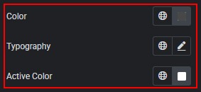 1. Options tab — typography and color for options (including active state).