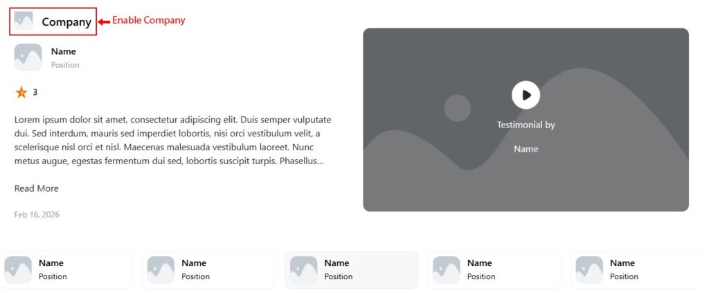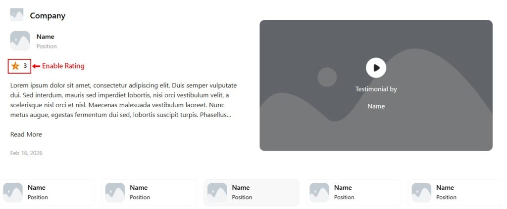 - Enable “Testimonial By” on Video — displays the “Testimonial by” text on the video.