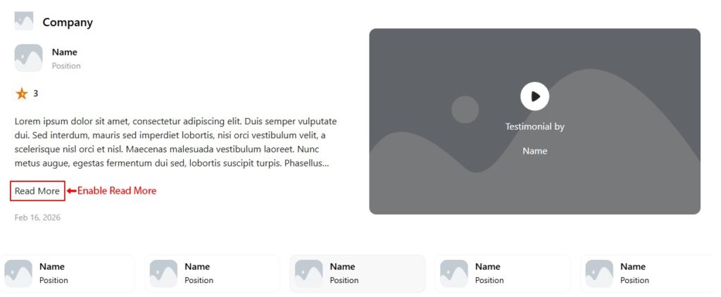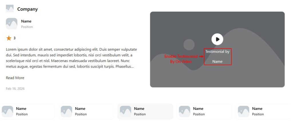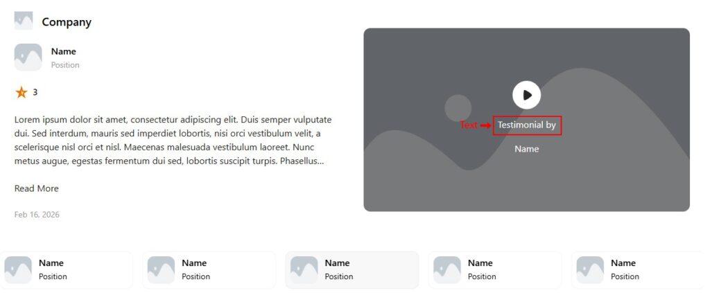 - Text — if Enable “Testimonial By” on Video is enabled, you can edit the text.