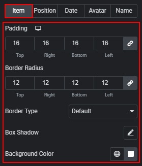 - Adjust padding. Set border radius. Configure border type. Add box shadow. Change background color.
