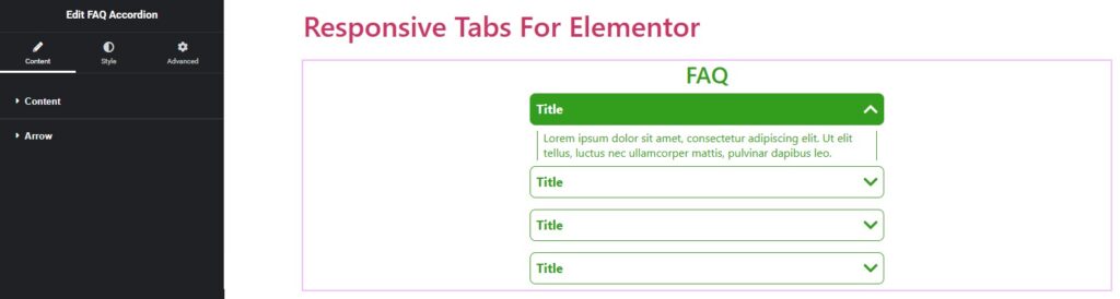 To add a new tab to the widget, click the widget on the page, go to the Content tab, and click the Add Item button.