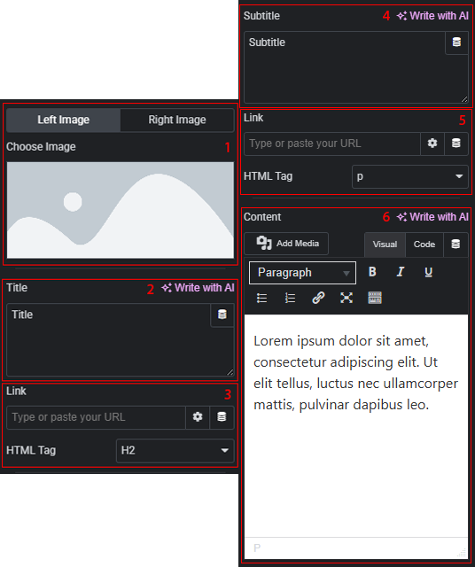 - Change the link and HTML tag for the subtitle for each tab individually.