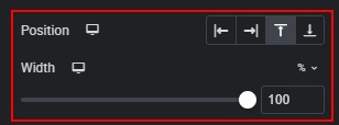 - Change the tab position. For certain positions, an additional width setting becomes available.