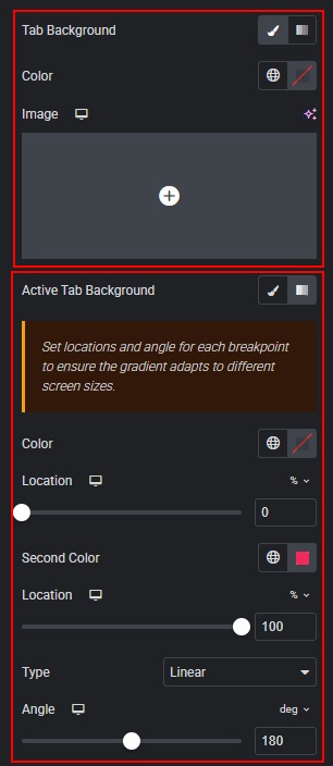 - Customize the default and active tab background by setting a color, adding an image, adjusting its position and size, or using a gradient.