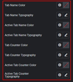 1. Change the color and typography of the tab name and counter for both default and active states.
