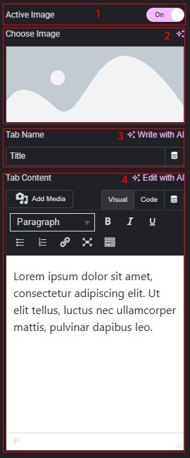 4. Change the tab content for each tab individually.