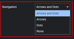 1. Navigation — allows you to choose the navigation type: Arrows and Dots, Arrows, Dots, or None.
