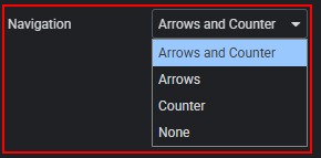 - Navigation — allows you to choose the navigation type: Arrows and Counter, Arrows only, Counter only, or None.