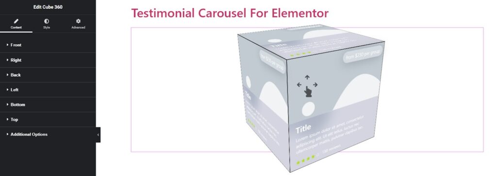 To add new reviews to the widget, click the widget on the page, go to the Content tab, and select the appropriate side.