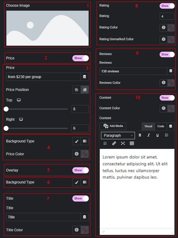 - If the price display is enabled, customize the price value, position, and spacing (top, left, or right) depending on the selected position.