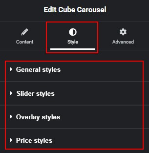 On the Style tab, you will find general style options for the widget.