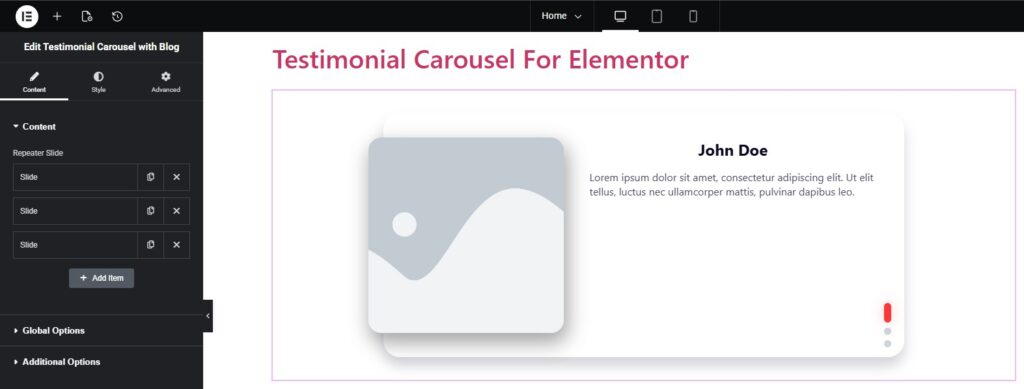 Testimonial Carousel with Blog