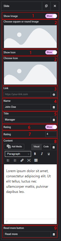 - If the rating display is enabled, you can set the number of stars (from 0 to 5, whole numbers only).
