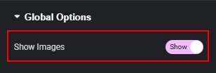 When you click Global Options while editing the widget, a panel will open with settings for displaying images across all cards.